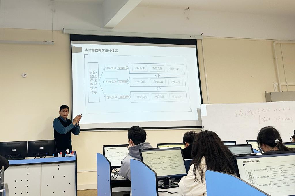 李晓义教授在F209教室以“基于数字化的旅游实验教学改革与创新”为主题,围绕经管类专业的实验教学痛点展开,引起教师们对于实验教学中心的发展路径与创新的思考,介绍了南开大学数字化实验教学的建设成效,并结合现有数字化实验教学模块,提出“轻体验、重创作、轻资产、重效果”的教学理念。