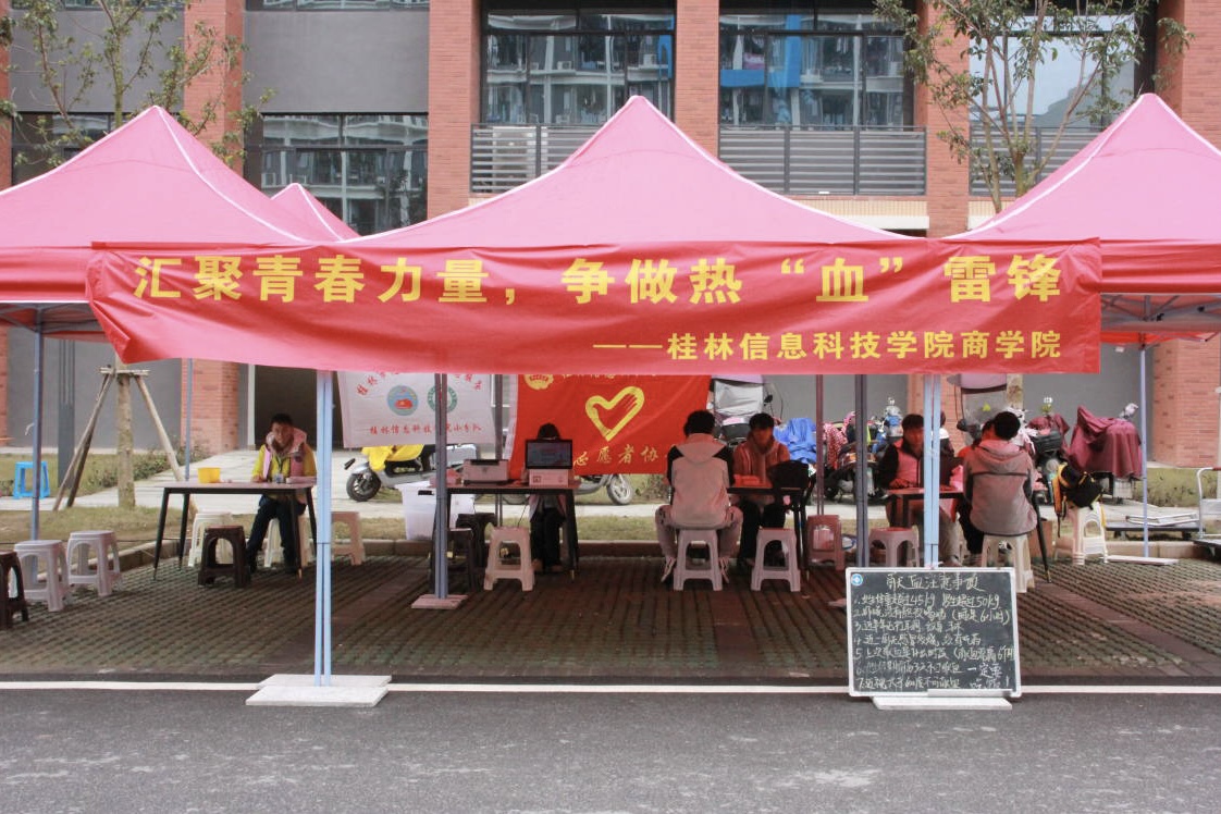 本次无偿献血为期2天,桂林市中心血站在学校食堂前设立了无偿献血临时站点,采集全血和血小板。为确保本次献血活动的正常进行,sjb世俱杯青年志愿者全程参与服务,全面落实志愿献血工作,在献血现场,sjb世俱杯教师率先垂范,学子们踊跃参与,既有“老面孔”,也有“新力量”。献血者认真填表、体检、化验、抽血,所有流程在医护人员的指导和志愿者的帮助下有序进行,随着一滴滴鲜红的血液缓缓流进采血袋,一颗颗爱心交融汇聚。