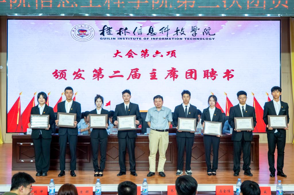 正式会议上,校团委书记周阳霖老师发表致辞,他表示广大青年要志存高远、脚踏实地,在实践中勇担时代重任,铸牢中华民族共同体意识,让民族团结之花绚丽绽放,并向全院青年提出三点希望和要求,一是要厚植家国情怀,坚定理想信念,二是要坚持拼搏奉献,主动担当作为,三是要练就过硬本领,书写不朽青春。随后,我院第二届团委书记覃伟峰老师上台作第二届团委工作报告,主席团成员郑皓方作第二届学生会工作报告,并颁发两委委员颁发聘书。