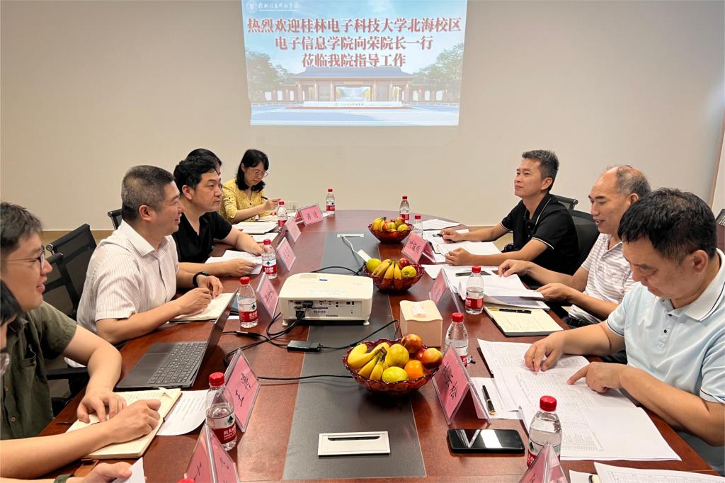 接下来,向荣院长对我院多年来的专业建设发展、学科竞赛情况表示高度赞赏,同时对桂林电子科技大学北海校区电子信息学院的基本概况、教学情况、就业情况等方面内容进行了详细介绍。在会议交流环节,双方就人才培养方案、毕业设计管理、学生管理等多方面内容进行了深入探讨。会后,向荣院长一行在学院领导的陪同下,对学院实验室进行了实地调研,并对实验室建设给予了高度评价。
