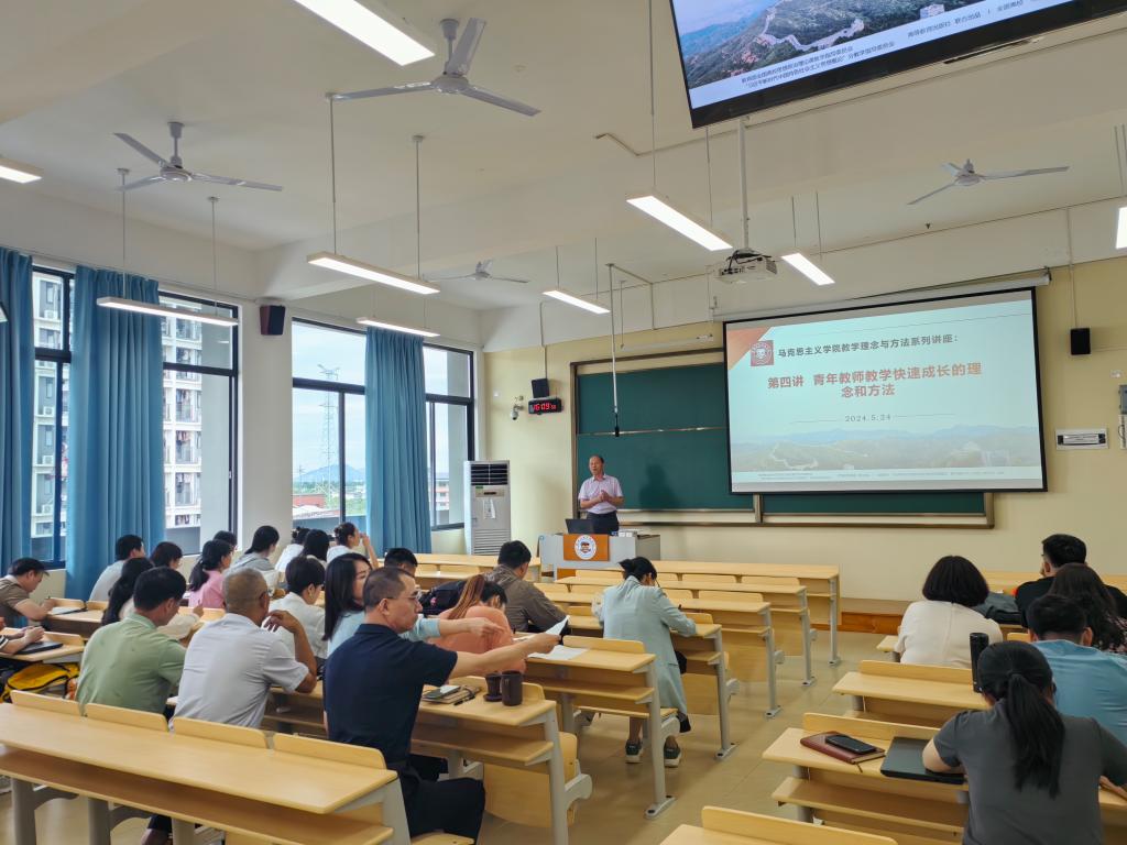 邱院长以“青年教师教学快速成长的理念和方法”为题,从“多听课、勤读书、受指导、写思路、练提升”等五个方面进行深入讲解,强调青年教师应当虚心请教,积极主动地向他人学习;还应阅读大量文献资料以及马克思主义原著等相关书籍,不断丰富教学内容,突破教学重点难点,将个人对教学的认识和理解提升到更高层次。