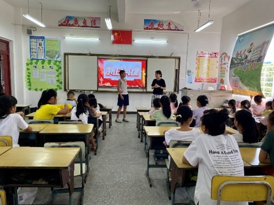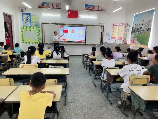 在支教活动中,实践团队针对不同年级的学生开展了多样化的思政课教学实践活动。团队成员通过组织开展“心灵感应、击鼓传花、数字拼凑、趣味思维、木头人”等系列小游戏拉进了与小朋友之间的距离,激发了学生的学习积极性。聂玉娇老师、但玉梅老师还分别开展了主题为《爱国主义教育》《抗日英雄王二小》的专题思政课。两位老师结合视频教学、竞猜问答等多种教学方式,寓教于乐,潜移默化中弘扬中华民族传统美德,倡导社会主义核心价值观。