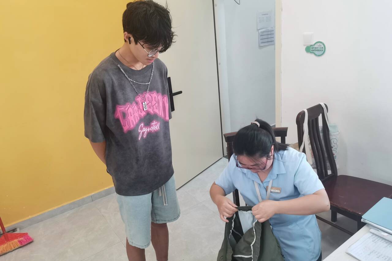 宿管阿姨们宛如学生们的贴心家长。面对学生生活中的小困扰,如衣物破损、物品损坏等问题,宿管阿姨们总是迅速伸出援手,用她们的巧手和爱心帮助学生解决问题。在各个公寓的服务驿站,同学们还能找到应急药品、针线包、轮椅拐杖、爱心雨具、小推车等贴心服务。