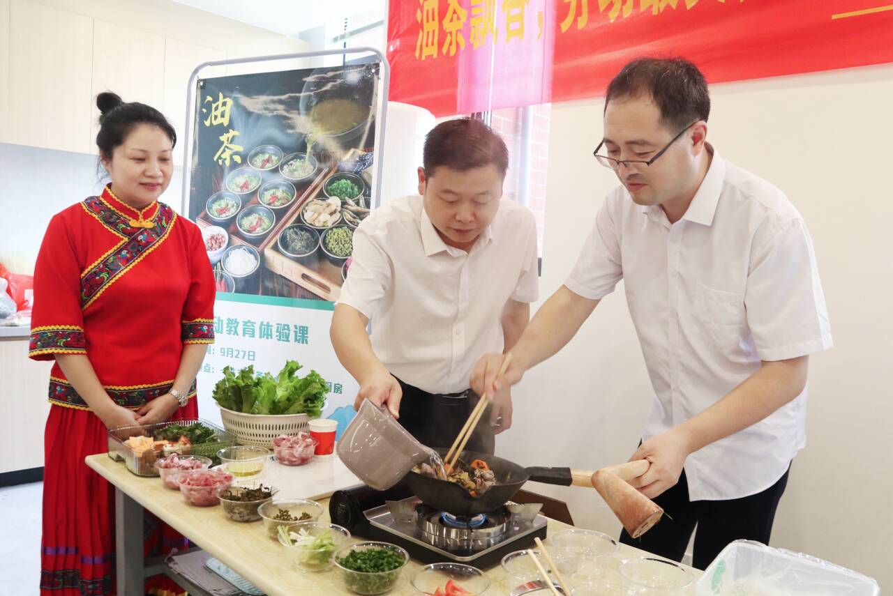 为强化学生劳动观念,弘扬劳动精神,推动新时代大学生素质素养教育在sjb世俱杯的深入开展,9月27日上午,劳育教研室在“一站式”社区服务中心的共享厨房举办了劳育主题活动——“魅力油茶,香溢桂林”灌阳油茶制作体验课。本次活动由劳育教研室承办,学校后勤服务处、素质素养中心、校团委共同组织。学校纪委书记、校长助理周璇,后勤服务处处长莫丽媛,素质素养中心副主任张锟,校团委书记周阳霖,劳育教研室主任迟菲菲出席本次活动。