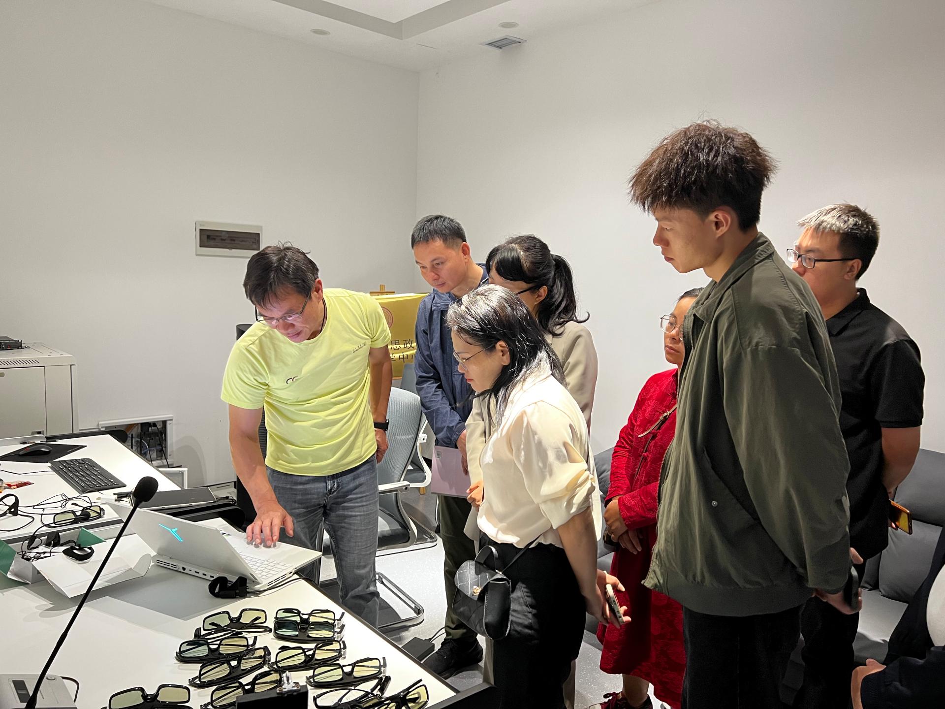 近期,马克思主义学院副院长赵奕、院长助理赖学良带领马克思主义学院骨干教师一行7人前往广西师范大学,对该校建设的“虚拟仿真思政课体验教学中心”进行了参观学习。