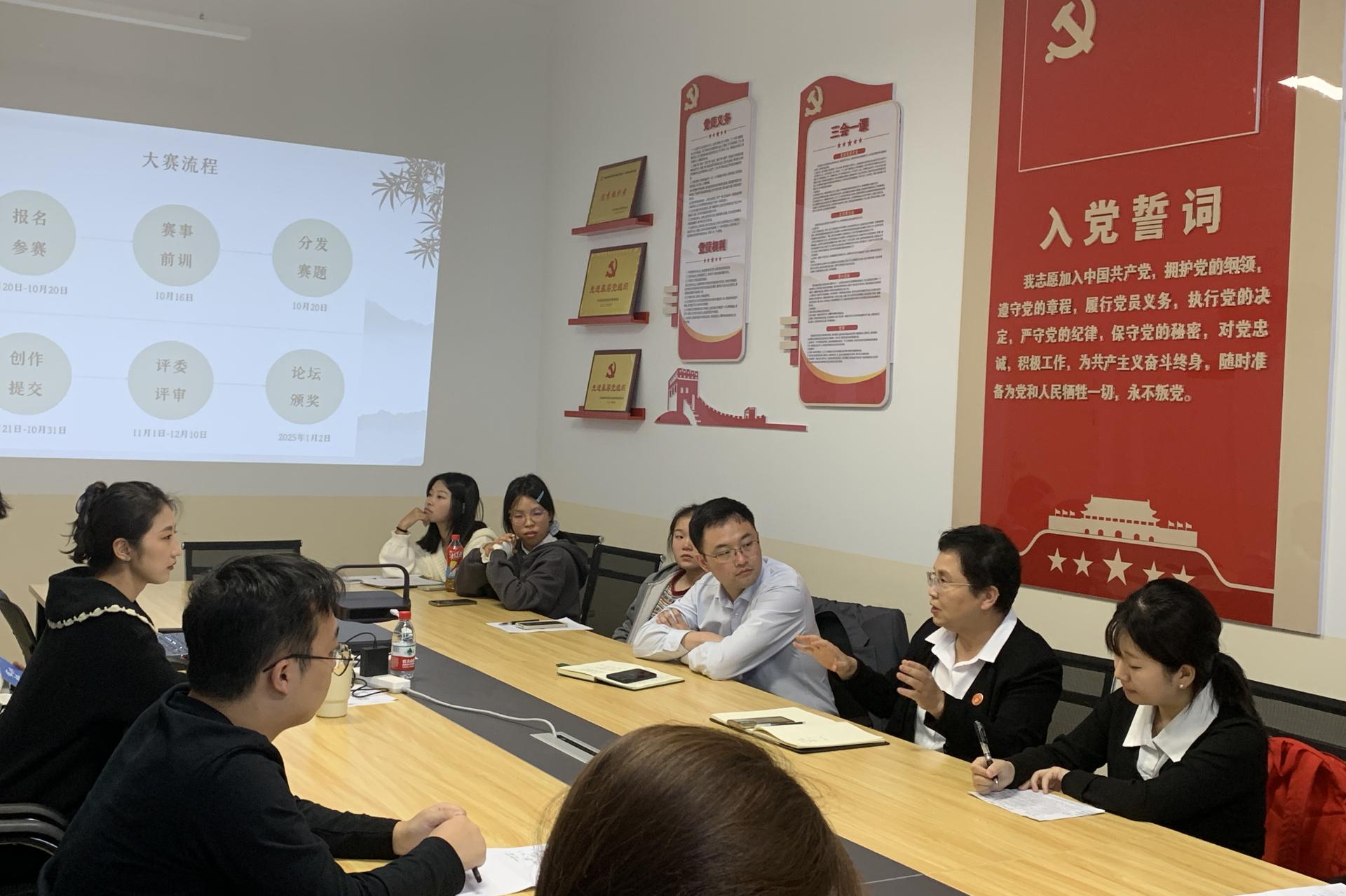 为进一步提高学生们的文化素养与创新思维,10月25日,商学院在F504开展了“我与院长书记面对面”活动(第三期)——第五届“诗译中国”大学生双语文创大赛指导交流会。学院院长周洁、党委书记许奇、团委相关负责老师以及大赛参赛选手参加会议。