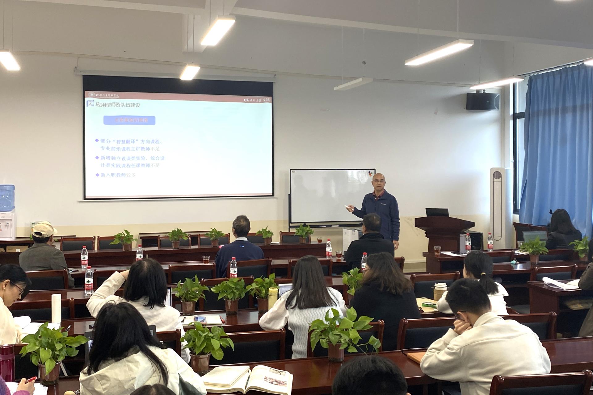连日来,外贸与外语学院成功举办了评建“六说”活动。此次活动由学院精心策划,旨在通过“六说”的形式,汇聚专业带头人及广大教师,共同探讨专业建设思路、教学质量提升与教师专业素养增强等重要问题。此次活动由学院副院长陆晓主持,全体教师参加。