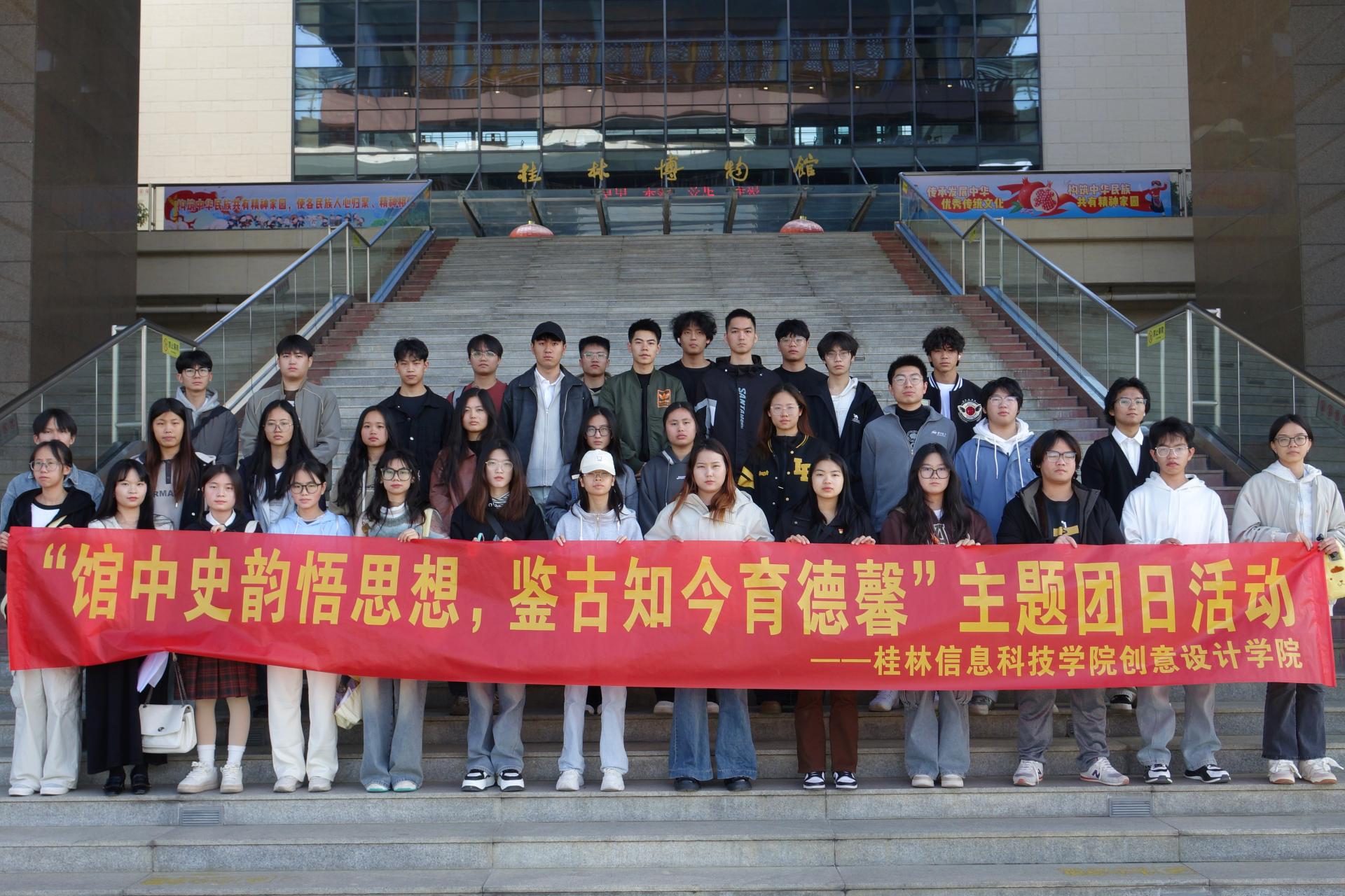 为通过了解历史促进青年的道德和思想教育,11月29日,创意设计学院在桂林博物馆顺利开展“馆中史韵悟思想,鉴古知今育德馨”主题团日活动。由学院团委指导老师陈洁带队,30余名团员参加。