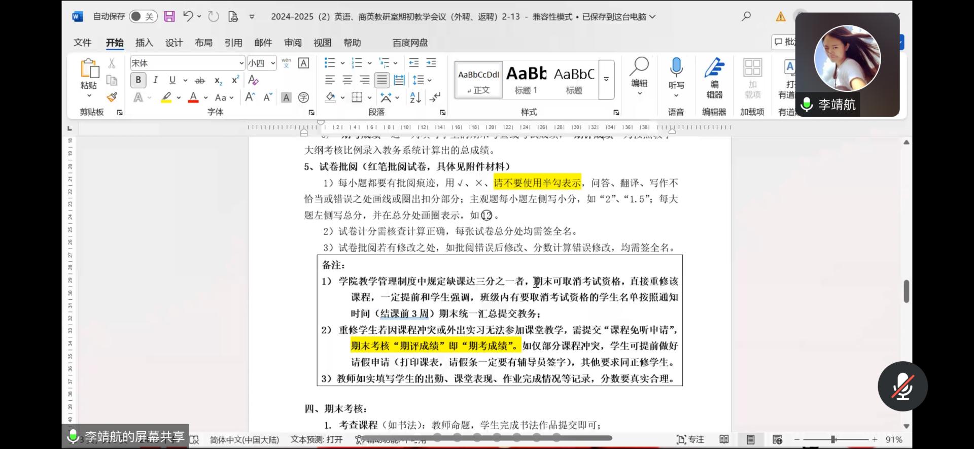 全体教师参加线上会议