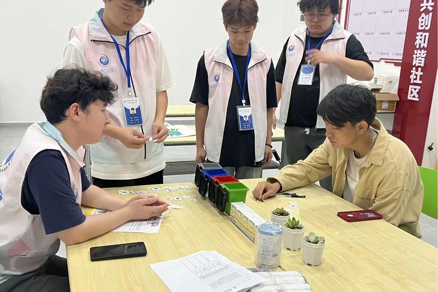 活动紧扣“绿色生活,分类先行”主题,设置“快闪问答”与“垃圾分类小游戏”两大环节。在快闪问答中,工作人员随机邀请学生回答节能知识题目,答对者可获赠多肉植物、书签等环保奖品;垃圾分类游戏区则通过模拟四色垃圾桶分类挑战,帮助学生掌握分类技巧,参与者根据正确率可赢取环保袋、垃圾袋等实用奖品。活动现场气氛热烈,学生纷纷表示“边玩边学,环保知识更易入脑入心”。