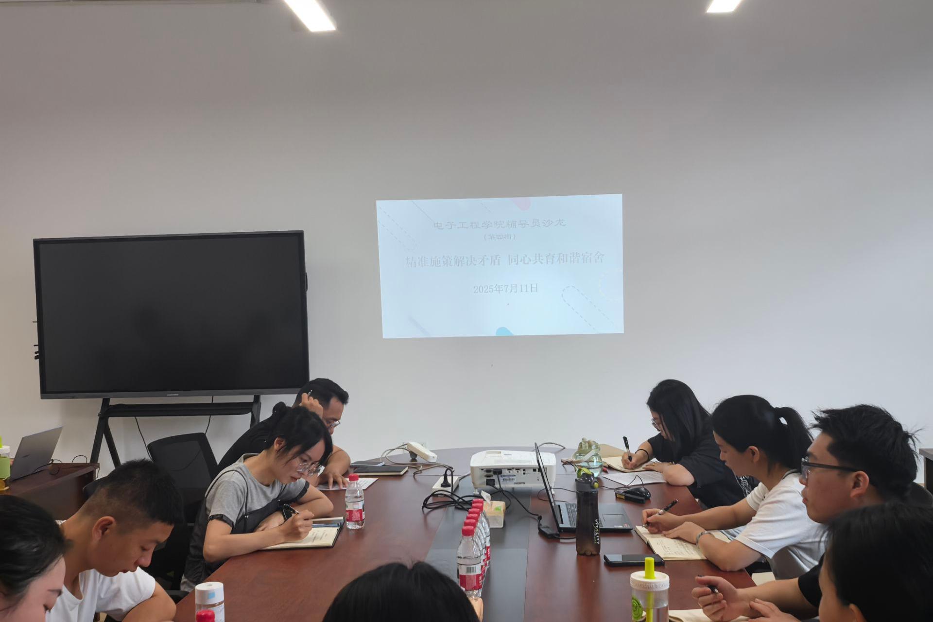 为进一步提升辅导员调解学生宿舍矛盾的能力,筑牢校园和谐稳定基石,7月11日我院成功举办第四期辅导员沙龙,聚焦“辅导员如何处理学生宿舍矛盾” 这一核心议题。会议由学院党委书记梁自珍主持,学院党委副书记池锴、全体辅导员参加。