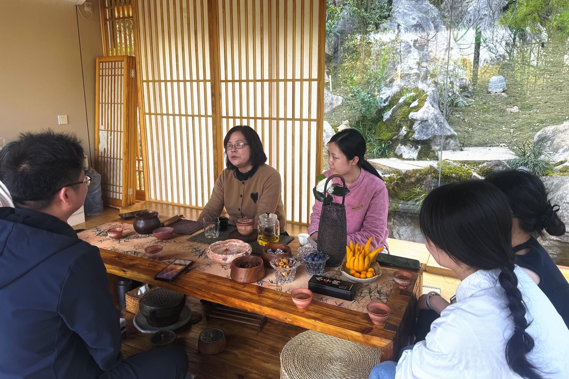 下午,学院团队到桂林和舍湖畔度假酒店,与酒店创始人、桂林民宿协会会长李佳钖女士进行座谈。李佳钖会长介绍了近年来桂林高端民宿的发展情况,提到目前行业在民宿管家、高端接待、国际客群服务等岗位存在用人缺口,尤其需要员工具备外语沟通能力和较强的服务意识。双方同意后续建立常态化沟通机制,推动民宿业经理人到校授课,促进人才供需信息共享,为学生提供更多实习机会的同时,也为民宿行业输送符合需求的专业人才。