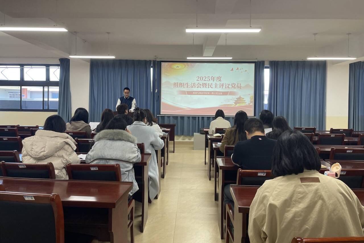 外贸与外语学院第一教工党支部会议现场