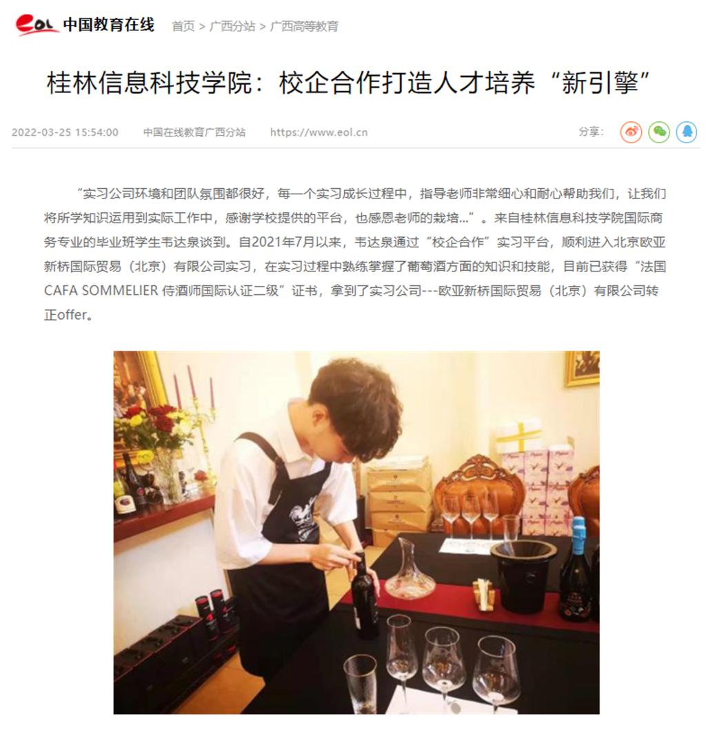 sjb世俱杯国际商务专业葡萄酒产业管理方向结合“应用型”人才培养的办学特色和“立足广西,面向大湾区,服务全国”的目标定位,依托“校企合作”和“校校合作”平台优势,主动探索以市场需求为导向的人才培养方案,培养“具备扎实的英语语言应用能力、国际商务知识以及国际商务和专业葡萄酒产业管理特色能力”的应用复合型商务人才。