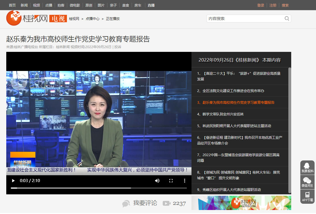 桂林电视台链接:https://tv.gltvs.com/202209/2022092619004590a4a2acc9154eac_2.shtml