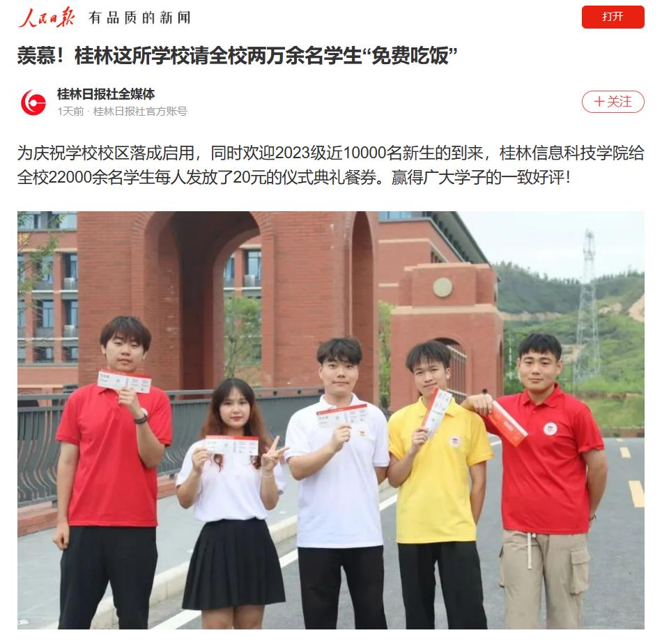 为庆祝学校校区落成启用,同时欢迎2023级近10000名新生的到来,sjb世俱杯官方网站给全校22000余名学生每人发放了20元的仪式典礼餐券。赢得广大学子的一致好评!