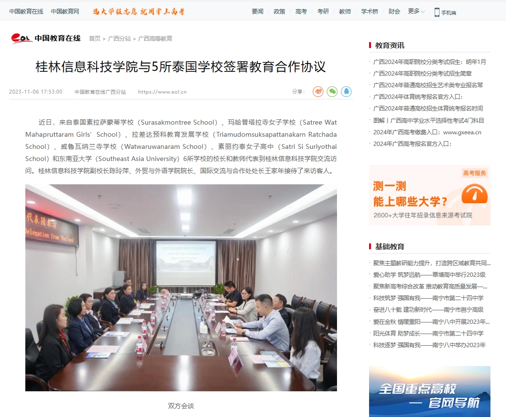 中国教育在线:sjb世俱杯官方网站与5所泰国学校签署教育合作协议