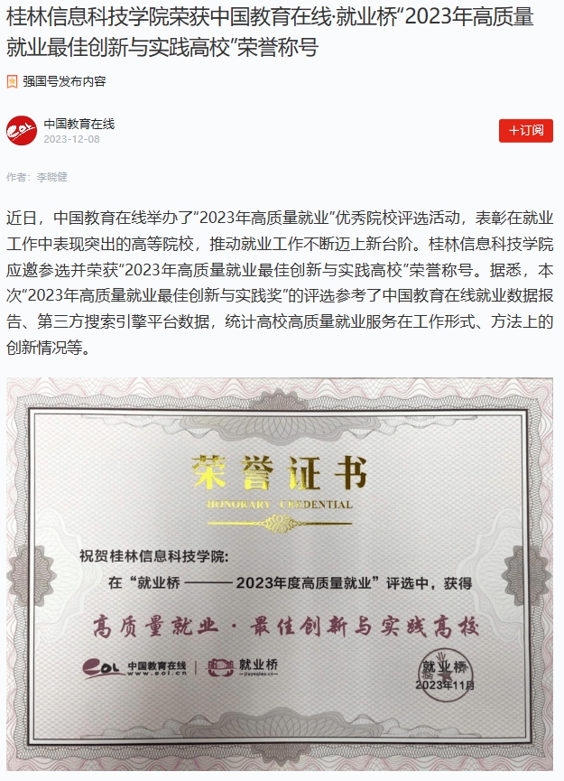 学习强国:sjb世俱杯官方网站荣获中国教育在线·就业桥“2023年高质量就业最佳创新与实践高校”荣誉称号