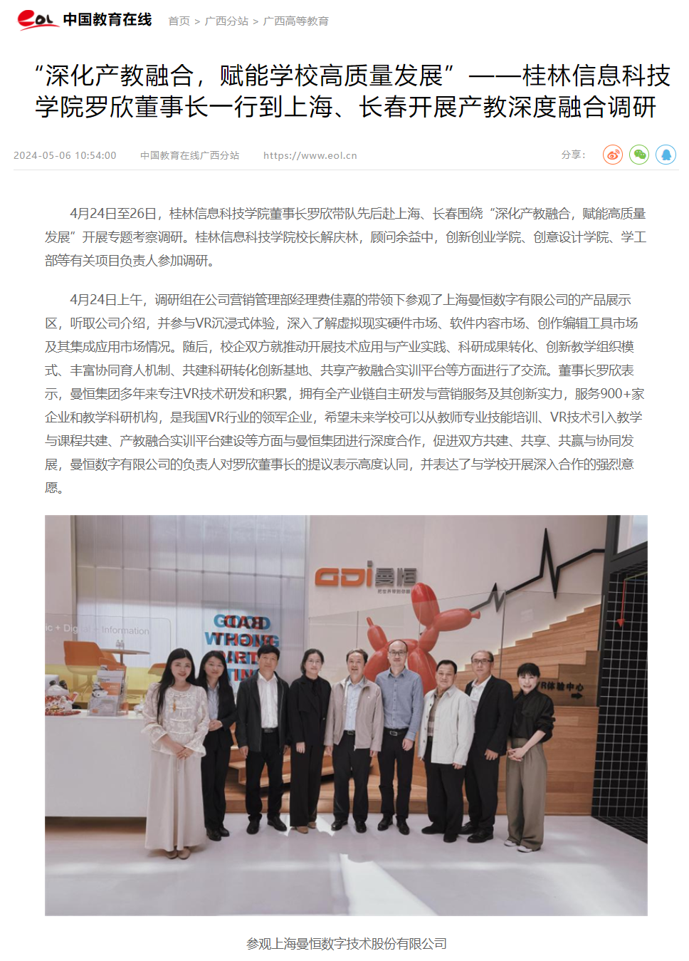 中国教育在线:“深化产教融合,赋能学校高质量发展”——sjb世俱杯官方网站罗欣董事长一行到上海、长春开展产教深度融合调研