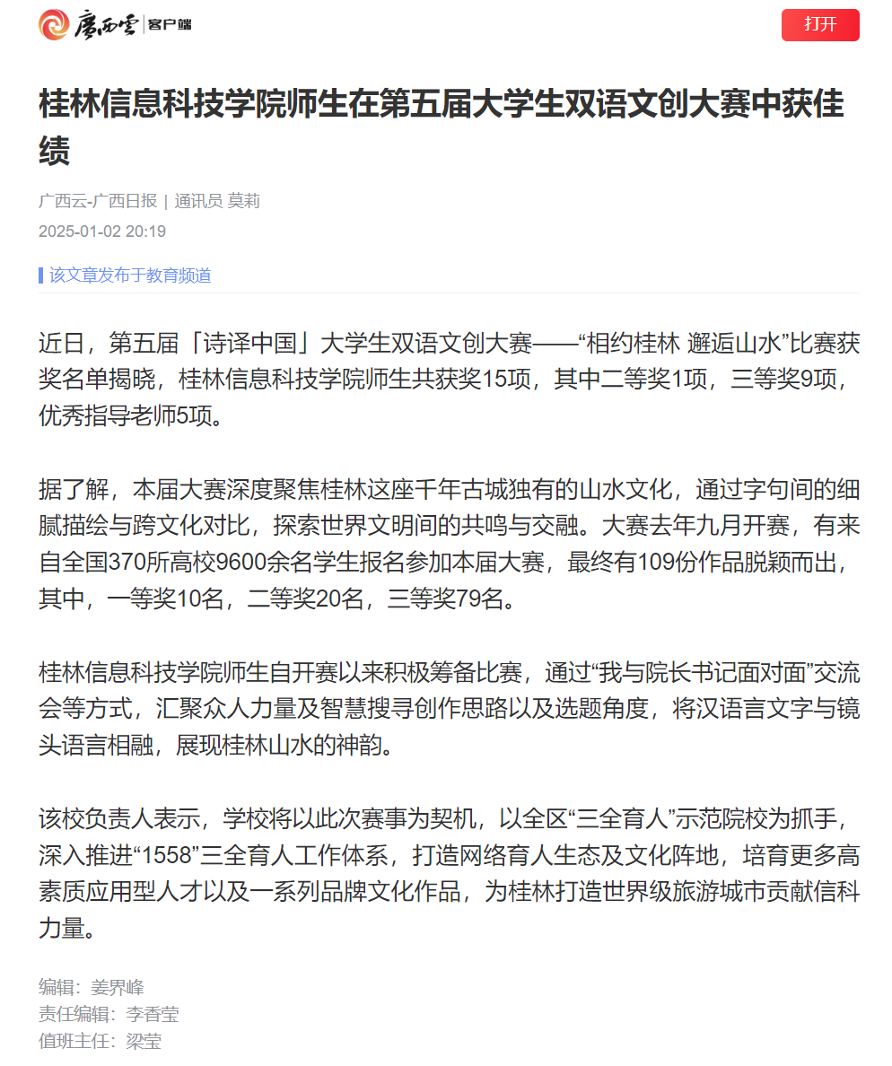 广西云-广西日报链接:sjb世俱杯官方网站师生在第五届大学生双语文创大赛中获佳绩