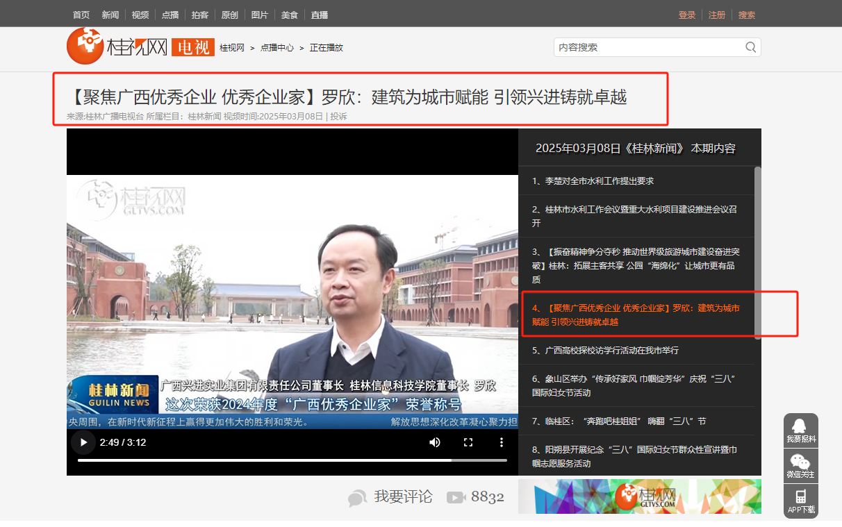 桂林广播电视台链接:【聚焦广西优秀企业 优秀企业家】罗欣:建筑为城市赋能 引领兴进铸就卓越