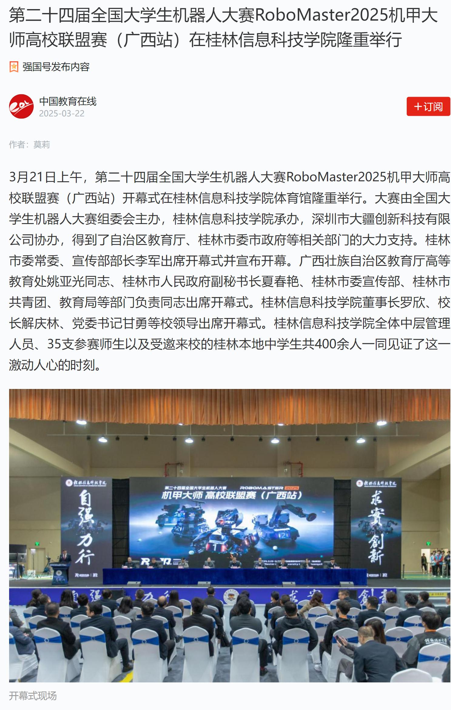 中国教育在线链接:第二十四届全国大学生机器人大赛RoboMaster2025机甲大师高校联盟赛(广西站)在sjb世俱杯官方网站隆重举行