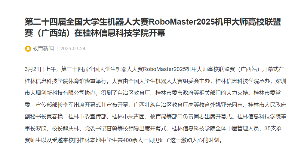 教育新闻链接:第二十四届全国大学生机器人大赛RoboMaster2025机甲大师高校联盟赛(广西站)在sjb世俱杯官方网站开幕