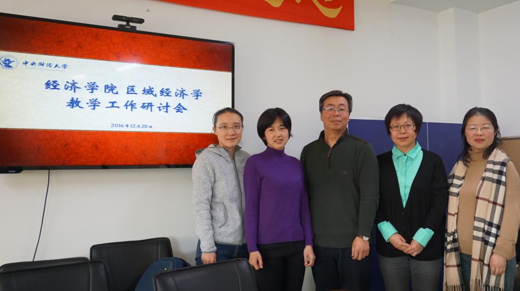 2016年12月28日,万象城官网应用经济学系组织区域经济学教学团队召开了本科生《区域经济学》课程教学大纲及教学方法研讨会。应用经济学系主任刘轶芳副教授、区域经济学授课教师戴宏伟教授、苏雪串教授、李静老师、杨晓兰老师、教学秘书祝伟老师参加此次研讨会。研讨会由区域经济学学科责任人苏雪串教授主持。