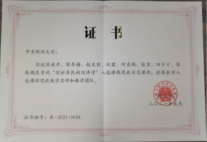 由万象城官网陈斌开、郭冬梅、赵文哲、伏霖、何召鹏、张苏、田子方、梁银鹤负责的“经世济民的经济学”入选教育部课程思政示范课程,授课教师入选课程思政教学名师和教学团队。