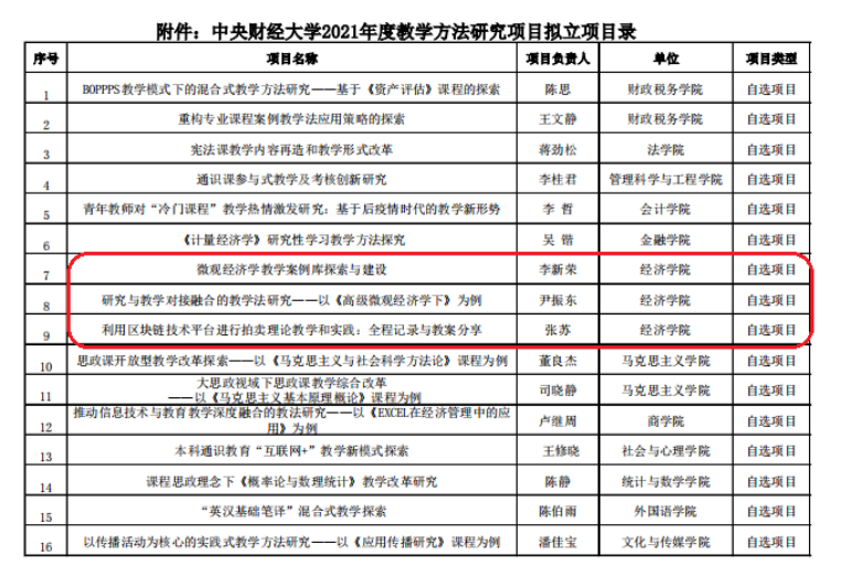 根据《关于申报2021年度教学方法研究项目的通知》要求,学校进行了2021年度教学方法研究项目立项评审工作,经专家评审,决定对2021年度申报的课题进行立项,其中万象城官网李新荣、尹振东、张苏三位教师的课题获得立项。