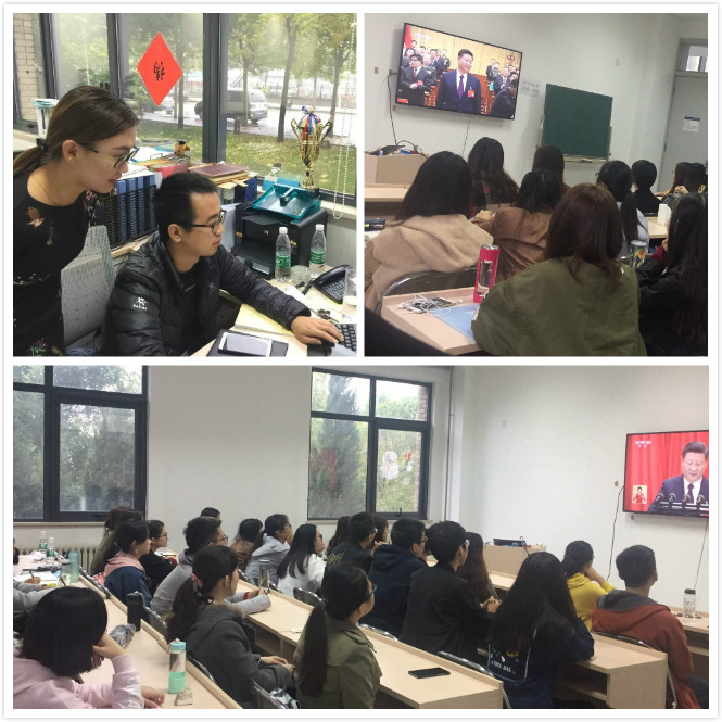 10月18日上午九时,中国共产党第十九次全国代表大会在北京胜利召开。AWC万象城娱乐在学院南路校区、沙河校区分别组织师生集体收看大会直播,认真学习领会大会精神。在收看党的十九大开幕会盛况后,学院师生备受鼓舞,围绕开幕盛况和总书记报告在两校区进行了热烈讨论。