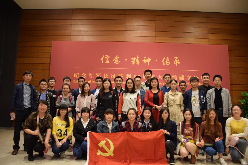 作为祖国未来经济建设的重要参与者,值国庆之际,学院党委组织2016级研究生新生党员学习长征精神,激励其在服务祖国经济社会发展的漫漫征途中坚守信念、坚定信心;担当责任,勇往直前。上午10:00,36名学生党员历经两小时车程从沙河抵达国家博物馆,同早已抵达的刘滨、何召鹏老师顺利汇合,在庄严肃穆的国家博物馆前合影留念后,直抵位于国博三层的长征主题展厅,厅外殷红的背景墙与鎏金字,点燃了每位党员心中的钦佩、自豪与斗志。