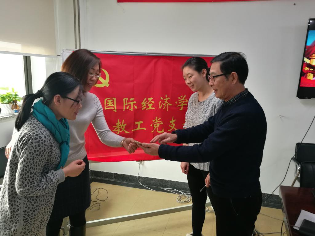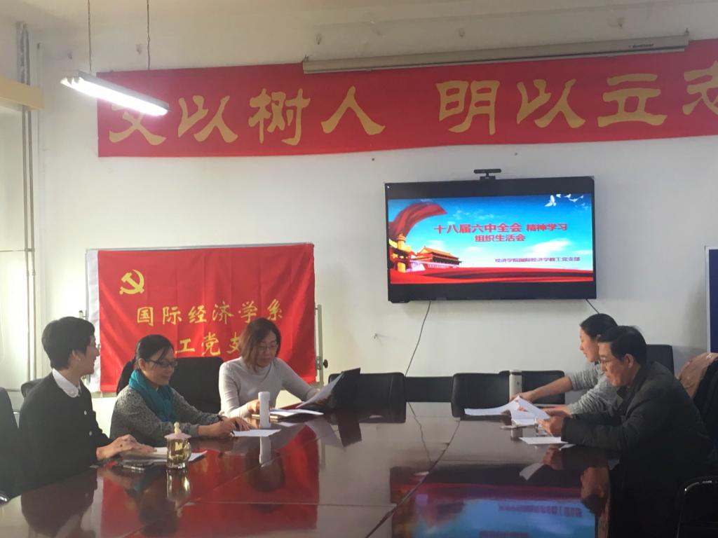 在讨论如何落实十八届六中全会精神,加强教师师德建设、发挥教师党员的先锋模范作用、如何更有效地开展学生思想政治教育工作时,国际经济学系党支部书记于爱芝教授提出,“教师要重视自身的思想政治觉悟和道德修养,要作学生成长的表率。现在家里还珍藏着读研时导师赠送的一套原版《资本论》,抽空还要拿出来认真研读。教师要重视个人的积累,要争取总书记期待的‘四有之师’”。
