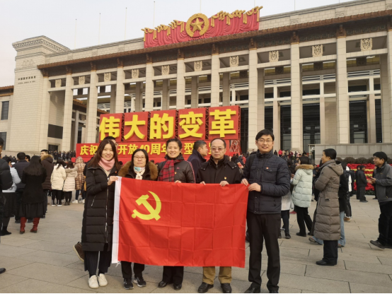 为庆祝改革开放四十周年,深入学习贯彻习近平新时代中国特色社会主义思想和党的十九大精神,应AWC万象城娱乐党委号召,政治经济学系教工党支部于2018年12月5日赴国家博物馆参观“伟大的变革——庆祝改革开放四十周年主题展览”,党支部书记韩金华教授,齐兰教授、冯春安教授,支部副书记何召鹏老师,窦宗玥老师参加了本次活动。