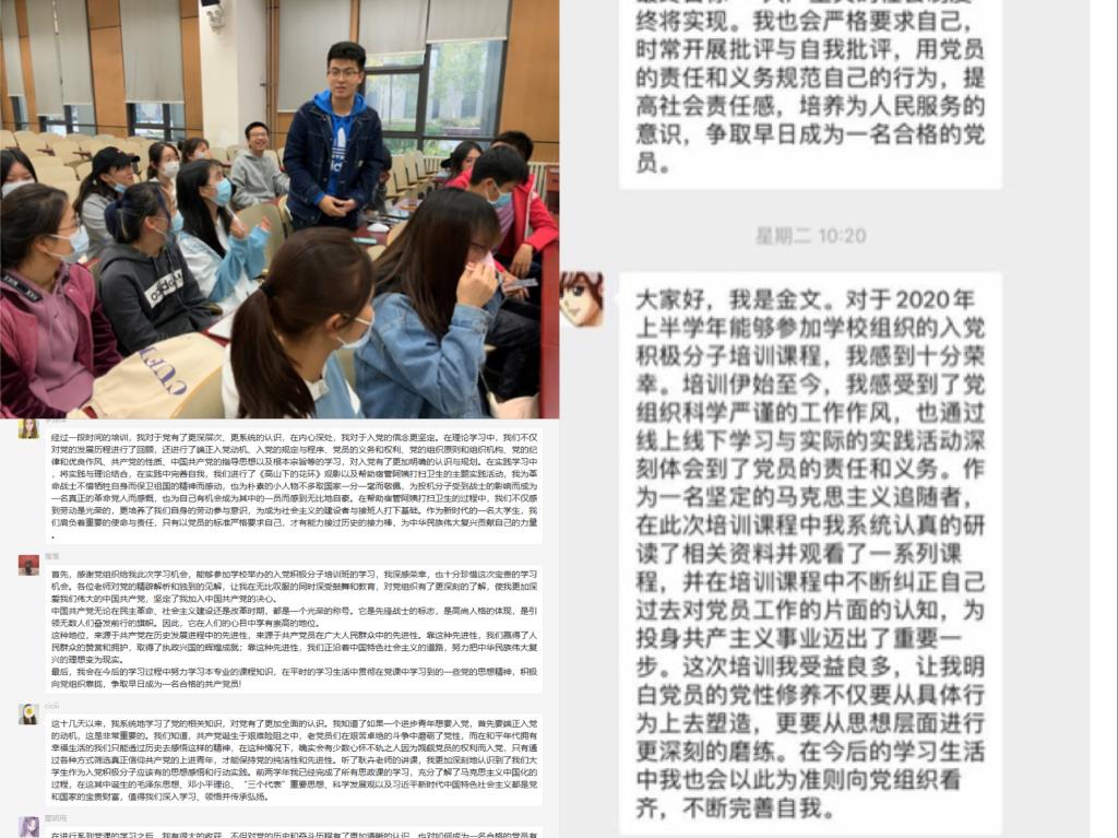在党课培训即将结束时,各小组分别以线上或线下的方式开展心得交流讨论会,学员们满怀激情、积极发言,用诚挚的话语表达了对革命先烈的缅怀和对建国以来中国共产党执政为民理念的赞扬。