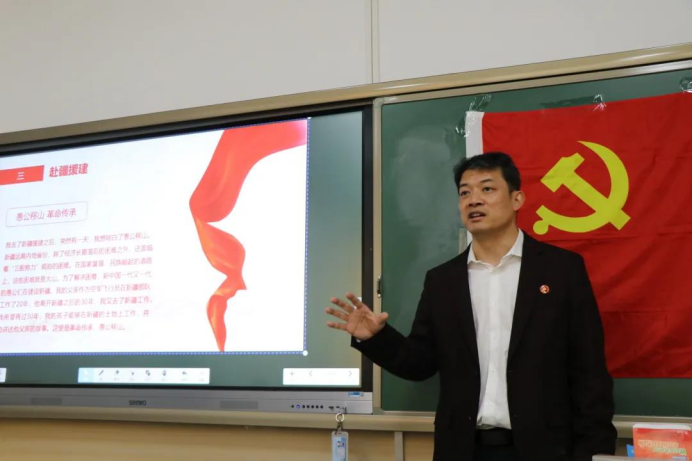 最后,吴江老师谈到了自己赴疆援建的经历。新疆远离内地省份,有各方面的一些困难。在国家富强、民族崛起的道路上,这些困难就是大山。正如“愚公移山”一样,为了解决困难,中国一代又一代的人们在建设新疆。吴江老师讲道:“我的父亲在新疆工作了20年,在他离开新疆之后的30年,我又去了新疆工作,我希望再过30年,我的孩子能够在新疆的土地上工作,也讲述他父亲的故事,这便是革命传承。”当问到他还有什么心愿时,他笑着回答说希望暑假能开车在天山的南北转一转,仔细看看这片美丽的土地。