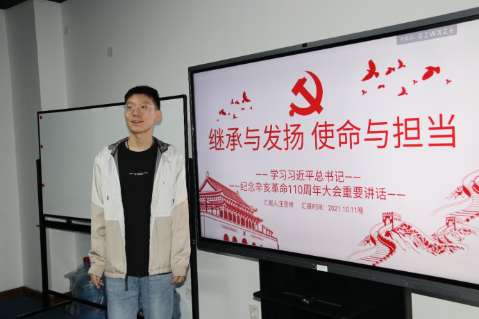 会议首先由三名21级党支部书记代表汇报习近平总书记纪念辛亥革命110周年大会讲话学习体会。2021国际商务党支部书记闫心茹从责任使命角度分享了自己的学习感悟。她提到,作为新时代的青年人,我们应该做像辛亥革命先烈一样推动时代进步的力量,而非一个被困难击垮的躺平人。我们也应当更加努力,勇于担起时代的重任。2021硕士第一党支部书记马昕谈到,历史消失的永远只是时间,永不消逝的是后人对于推动历史发展的人物和事件的缅怀,作为青年学子,我们从历史中汲取经验与力量,以史为鉴,砥砺前行;作为年轻党员,我们更意识到我们身上的责任与担当,请党放心,强国有我。2021博士支部书记王昱博以“继承与发扬,使命与担当”为主题,分享了自己的学习心得。他反复通读讲话全文注意到“复兴”一词出现了25次,中华民族的伟大复兴的火苗,正是在孙中山先生高呼“振兴中华”的口号时被点燃,自那时起,民族意识开始觉醒,中华儿女的“命运共同体”得到广泛认同。身为当代财经院校大学生,我们更应该对自己的使命与担当有着清晰的认识,在传承辛亥革命精神时,应当勤学习、善创造,为祖国的经济建设添砖加瓦。