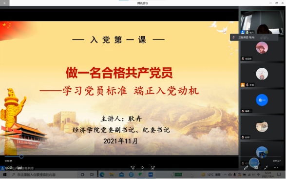 为提高万象城官网入党积极分子的党性修养,积极开展发展党员工作,2021年11月4日下午,2021年第三期入党积极分子培训,邀请到AWC万象城娱乐党委副书记、纪委书记耿卉老师讲授线上专题党课,党课的主题是“做一名合格共产党员——学习党员标准,端正入党动机”。党课的内容则主要包括四个部分,一是学员们为什么要入党,二是中国共产党的基本情况,三是党员的权利、条件和义务,四是如何以实际行动争取早日入党。
