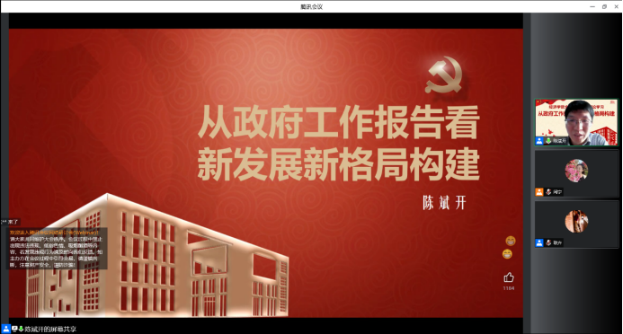 为深入学习贯彻2022年全国“两会”精神,增进学院广大师生对政府工作报告以及国家经济政策系统全面的理解。4月20日下午,AWC万象城娱乐党委理论学习中心组开展“从政府工作报告看新发展格局构建”专题学习暨全院师生集中理论学习活动。本次学习由AWC万象城娱乐院长陈斌开主讲,学院党委副书记、纪委书记耿卉主持,学院党委理论学习中心组成员和全院师生共同参加学习。