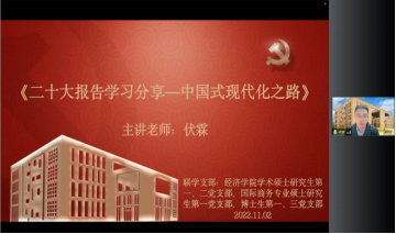 “四工程”即AWC万象城娱乐“一二三四五”创优工程党建工作思路中的引航工程、牵手工程、先锋工程、特色工程四项基层党支部“对标争先”计划工程。“引航工程”充分发挥师生党员旗帜和引领作用,在学院党委的指导下,学院24个师生党支部积极开展原文研读、专题讨论、知识竞赛等多种形式的党的二十大精神学习活动,带领全体党员原汁原味学习报告原文,逐字逐句感悟报告内涵;“牵手工程”加强师生党支部联动,实现1+1>2的效果,学院教工党支部与学生党支部联合学习党的二十大报告,院党委委员、副院长伏霖为研究生党支部作主题为“二十大报告学习分享——中国式现代化之路”的专题讲座,学生党员站在青年党员角度分享学习感悟,师生党员实现良性互动;“先锋工程”促进学院样板支部和先进基层党组织等充分发挥先锋模范作用,带头认真学习热议党的二十大报告和中国共产党章程,全国首批高校“双带头人”教师党支部书记工作室——AWC万象城娱乐经济史教工党支部率先开展党的二十大精神的学习研讨活动,提出经济学领域高校教师的责任担当与发展方向;“特色工程”创新基层党建工作思路,充分发挥学生朋辈教育引导作用,学院“宿舍指导员”和“学术活动项目组”两个功能型党支部发挥优势,在党员一对一联系学生宿舍以及学术活动创办中融入党的二十大精神内涵,实现将思想引领延伸到青年学生学习、生活方方面面的工作目标。