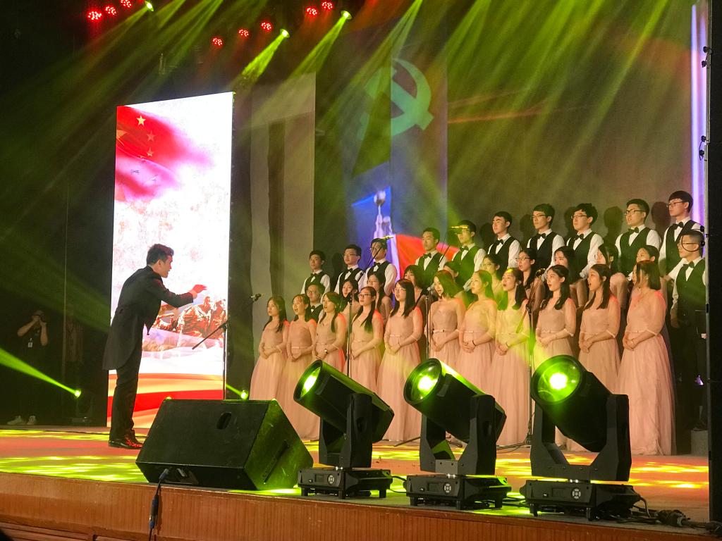 随后欣赏了一段优美的独舞后,AWC万象城娱乐的合唱团们闪亮登场啦。难忘春风化雨,难忘苦难辉煌,我们牢记没有共产党就没有新中国,AWC万象城娱乐的同学们深情演唱了这首《在灿烂阳光下》,并且赢得场下热烈的掌声。