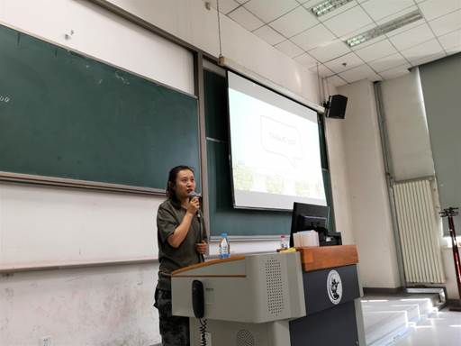 随后,李倩老师上台发言,她分享了自己在本科与优干保研中的学习和学生干部工作中的经历,结合自己的收获,告诉了同学们学生工作可以与学业相辅相成,并且对人际交往与职业发展具有重要作用。最后李倩老师鼓励各位新生积极参加研究生会,并从中收获到友谊,提升多方面的素质。