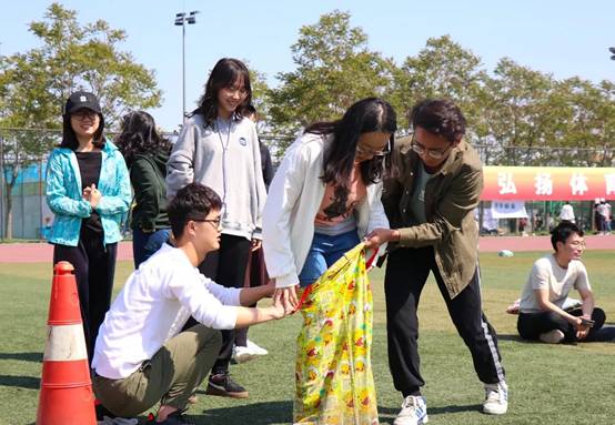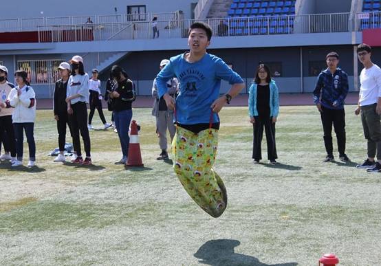 除常规的田赛与径赛,本次运动会还举办了一系列趣味项目:足球踢准、20人绑腿跑、篮球投篮接力、旋风跑与袋鼠跳等。在趣味项目的比赛中,同学们通力合作,相互配合,感受体育的乐趣,感受运动的魅力。