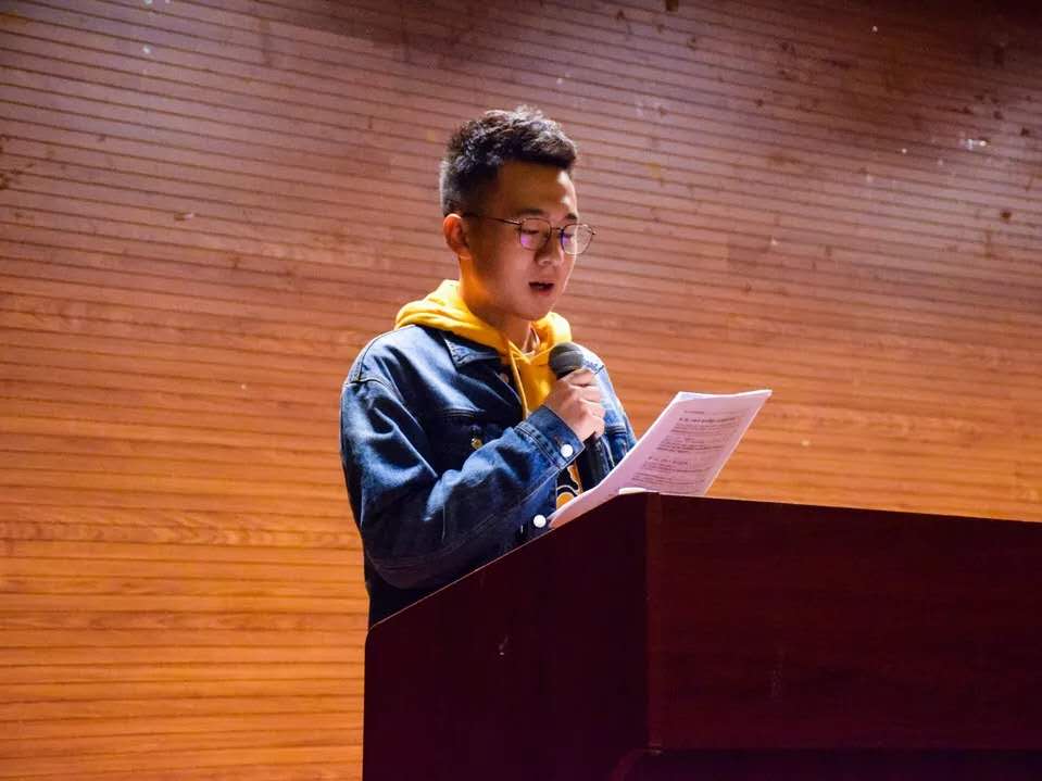 接下来,由第二团副曹鉴发言。曹鉴同学首先联系自己的亲身经历向学员们阐释了基础团校的内涵——简单纯粹,兼备趣味性与实用性。后来,谈及国庆游行的庄严时刻,他不禁发出了“此生无悔入华夏,来生还在种花家”的感慨。他希望学员们能把基础团校作为自己的起点,将“不忘初心、牢记使命”的信念和“龙马奋进”的精神传扬下去。