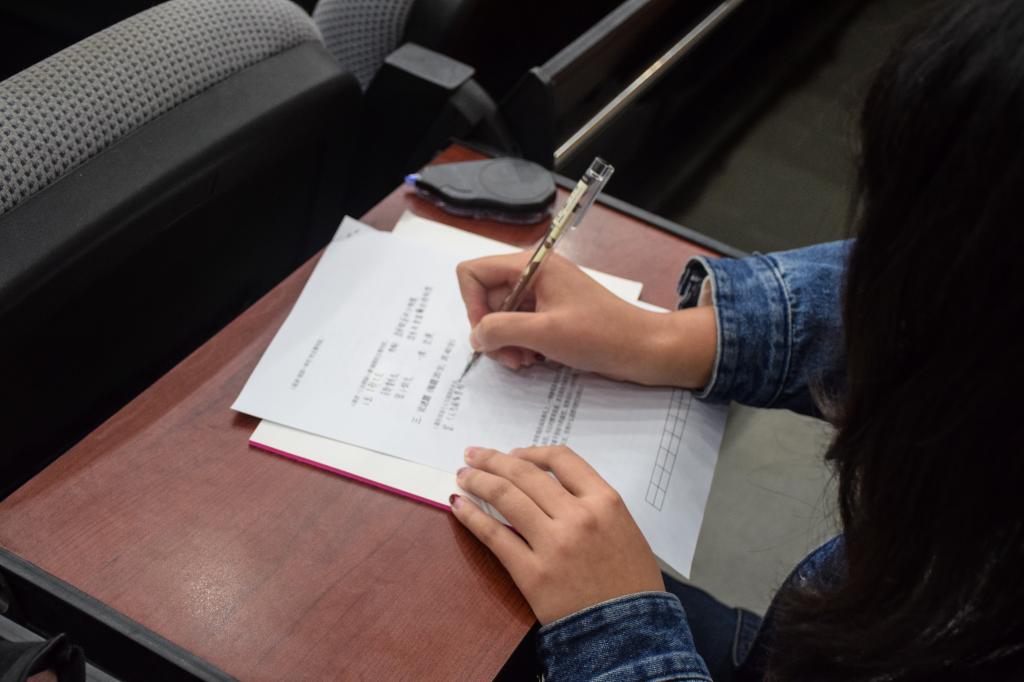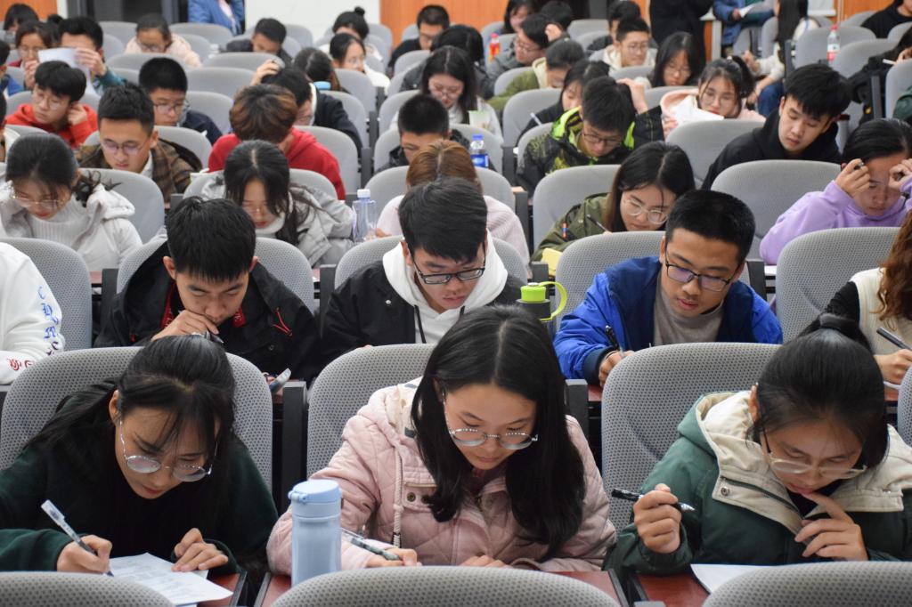 随后进行的是团学团务知识测验。本次测验主要考察了视频里所提及党的伟大奋斗历程中的重要内容以及同学们对团、党、国家的认识。考题范围大到党的发展史中的重大历史事件,小至身边的“芮+”计划,既考察了同学们掌握作为一名共青团员所应具备的理论知识,也要求同学们对个人与国家的关系发表自己的看法。同学们专心致志认真答题,并在四十五分钟内交上了自己的答卷。