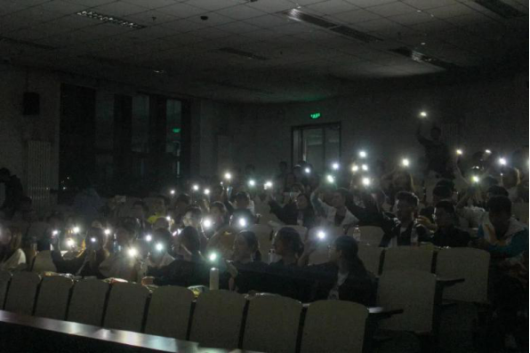 伴随着耳熟能详的旋律,张皓天拿着话筒走上讲台,手机灯光汇聚成灯海,随着音乐的节拍晃动,置身其中,美好而浪漫。