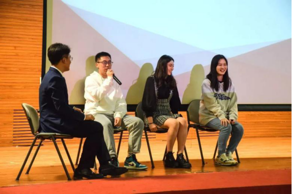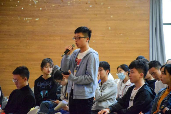 主持人张皓天与崔淙源、张瑞祺、胡欣采取“焦点访谈”的形式进行了现场答疑,从同学们关心的综测出处及其重要性到学生工作等问题,从如何组织进行大学生双创活动到假期实践活动如何开展,一场别开生面的优秀学生干部交流会不仅拉近了新团员与学生干部的距离,消弭陌生感,还帮助了新团员在团校活动前进路上,拨云见日,柳暗花明。