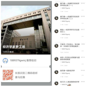 兴趣决定方向,培育拔尖的经济学人才,离不开兴趣的激发和视野的提升。“经济学家梦工场”以微信课堂为依托,邀请学院深受学生喜爱的教师开展在线讲座,讲授趣味盎然的专业话题,激发学生兴趣,实现对学生的“云”服务。自第十一期新增的“喜马拉雅FM”经济学家梦工场专辑,将微信课堂内容转录上传至专辑中,形成了微信课堂内容合集,方便经济学家梦工场各微信群成员收听内容,同时仍然保留了微信群答疑功能,进行群成员和授课教师的话题互动。第十二期微信课堂录制了黄乃静老师主讲的“机器学习在经济学中的应用(上)”和“机器学习在经济学中的应用(下)”、张川川老师主讲的“人类发展的经济学”和田杰棠老师主讲的“创新经济学”共四场微信课堂 。第十三期微信课堂,由徐华、于爱芝、兰日旭三位老师,带来了主题为“不忘初心的儒家与道家的思想渊源”、“不忘初心、牢记使命:从党的三农情节看乡村振兴战略”、“‘不忘初心、牢记使命’主题教育的四点体会”的三场微信课堂。