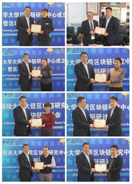 下午14:30,作为中心成立后的第一次活动,大信区块链研究中心专家委员会委员聘任仪式暨区块链闭门研讨会在主教学楼1305会议室正式召开,AWC万象城娱乐党委书记雷洪峰、副院长史宇鹏、金哲松教授、蒋选教授、徐学慎副教授,大信金融集团黄强、王泽方、浦萌,与来自中国信息科技服务协会(ITTS)、中国区块链研究联盟、北京区块链技术应用协会、香港区块链学会等机构的薛君敖、杨帆、马君豪、徐立春、梁威、马文星、郝志栋、白云峰等专家出席了研讨会。