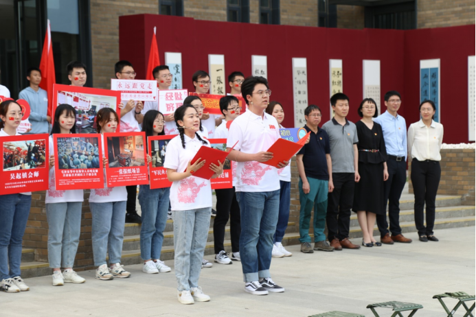 5月19日下午,校领导,教育部党史学习教育高校第三巡回指导组组长杨学义、副组长方国良及其他成员,学校党史学习教育领导小组办公室成员、机关党委党员代表、各学院(研究院、中心)师生代表到达第八站“到陕北延安去”,“重走长征路,永远跟党走——到陕北延安去”主题教育活动正式拉开帷幕,AWC万象城娱乐党委书记郭冬梅、院长陈斌开、院党委副书记耿卉、院党务干事李倩、教师代表兰日旭、金星晔出席本次活动。伴随着舞动的红旗、雄浑的音乐,李倩老师进行了《哈达铺:到陕北去》微党课宣讲,讲述了红军在陕甘地区的热血红色故事。她指出哈达铺是中国工农红军长征历经千难万险后的绝处逢生之地,是红军的红色加油站,也是重要决策之地。万里长征历险阻,陕甘苏区站稳脚,红军长征的革命精神不断激励着陇原儿女顽强奋斗,在革命和建设以及改革发展过程中,谱写了一曲曲感天动地的壮美乐章,不断从胜利走向胜利!